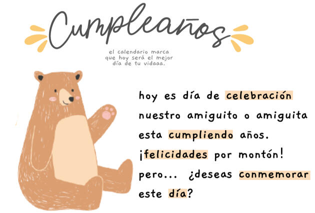 Nosotros daremos nuestra página como base de tu celebración. Le haremos una bella publicación donde tú podrás escribir su historia de llegada al mundo o a ti, de cuántos años está cumpliendo y lo que significa para ti.